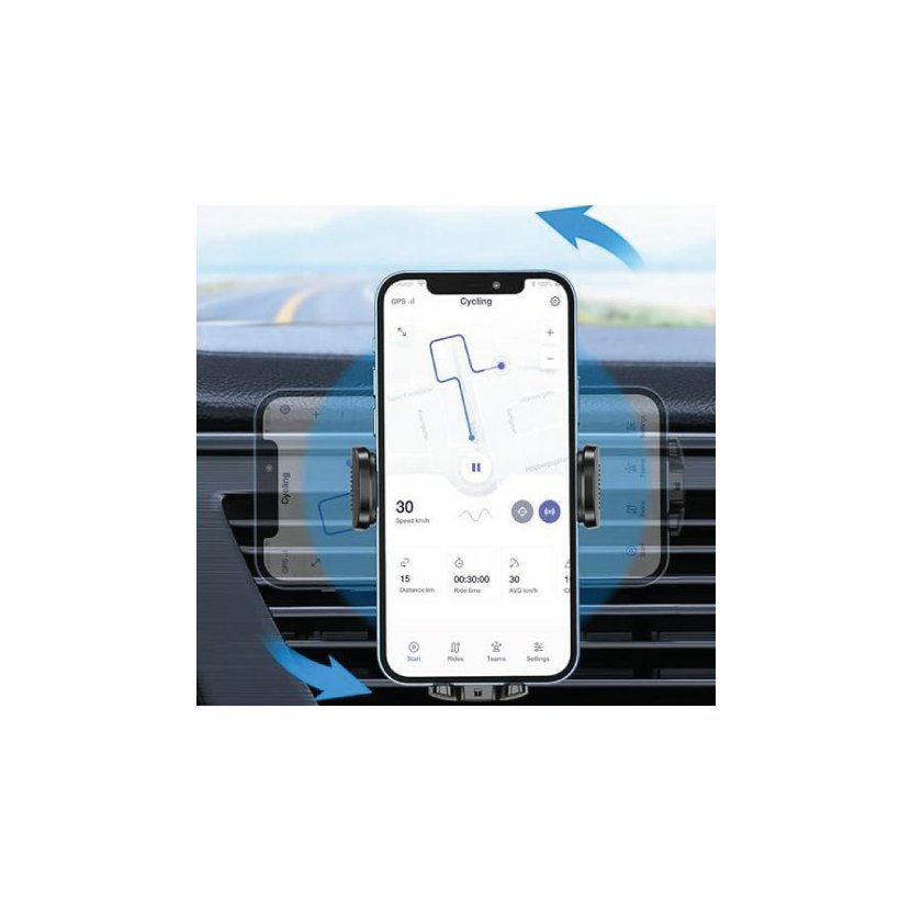 • Univerzální spona na větrání: Kromě upevnění na palubní desku a čelní sklo je držák dodáván také s robustní sponou větracího otvoru, která nabízí další možnost bezpečného upevnění. Spona je kompatibilní s většinou automobilových ventilačních otvorů, což usnadňuje instalaci a odstranění podle potřeby.