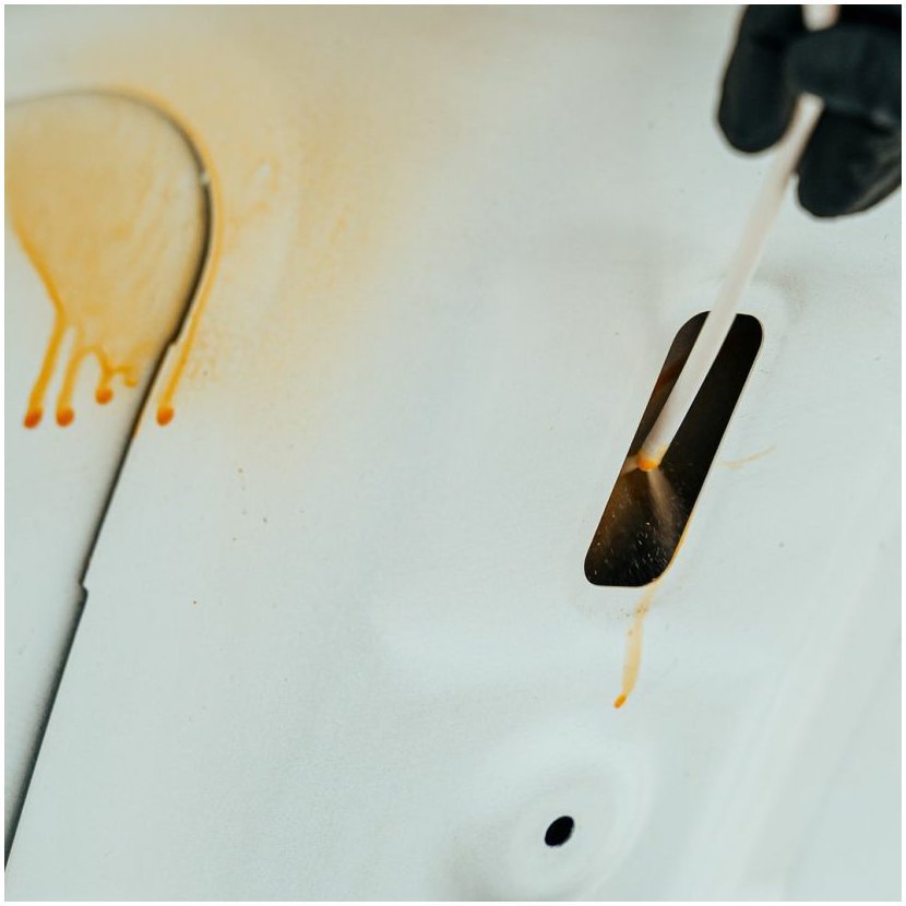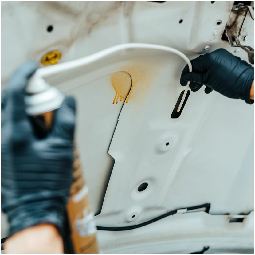 - 3. Vstříkněte do stávajících otvorů v karoserii vozu pomocí dodané hadice. V případě potřeby vyvrtejte otvory o průměru 6 mm. Neaplikujte na motor, brzdy a tlumič výfuku.