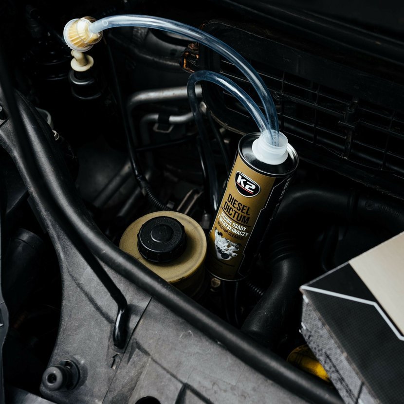 Multifunkční prostředek nebo čistič vstřikovačů K2 Diesel Dictum: - snižuje spalování čištěním vstřikovačů a obnovuje správnou atomizaci vstřikovaného proudu paliva - výrazně snižuje problém kouření (černý kouř charakteristický pro dieselové motory) tím, že omezuje množství škodlivých zplodin vypouštěných do ovzduší - usnadňuje startování motoru v zimě - maže a chrání napájecí systém proti korozi, což výrazně prodlužuje životnost vstřikovačů a palivového čerpadla - zvyšuje výkon motoru - utlumuje a zklidňuje chod motoru naprázdno